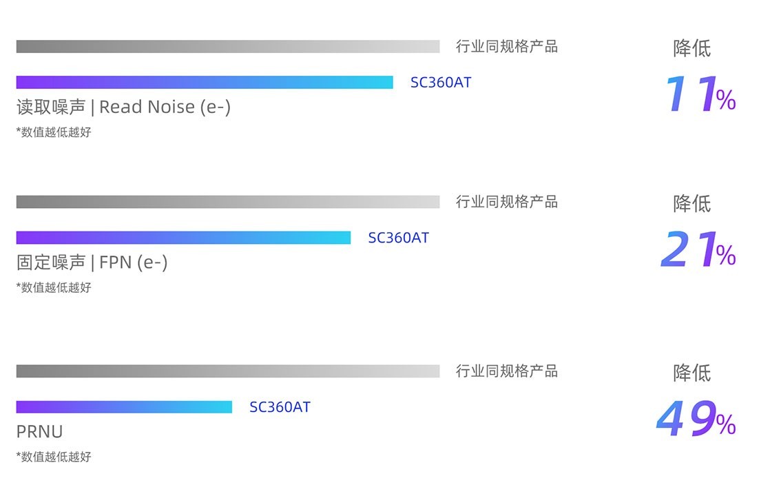 夜间道路、照明不足的地下停车场等暗光环境,对图像传感器的噪声抑制性能提出了更为严苛的要求。基于思特威先进的SFCPixel®、超低噪声外围读取电路等技术,新品SC360AT具备优异的噪声抑制表现。相较行业同规格产品,SC360AT的读取噪声(RN)和固定噪声(FPN)分别降低约11%和21%,其PRNU大幅降低约49%,即使在暗光场景下也能为车载摄像头提供清晰、低噪点的影像,从而有益于智能汽车视觉系统的准确识别和判断。