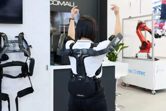 面向工厂及户外作业者,柯马展示了MATE-XT(上背部)与 MATE-XB(下背部)可穿戴外骨骼,广泛适用于弯腰、搬举、过肩作业等重复性任务。该系列具有轻量化、高透气性等特点,且可在户外高温、高湿乃至腐蚀性海洋环境中稳定工作,助力提升工业作业场景下的一线员工福祉。