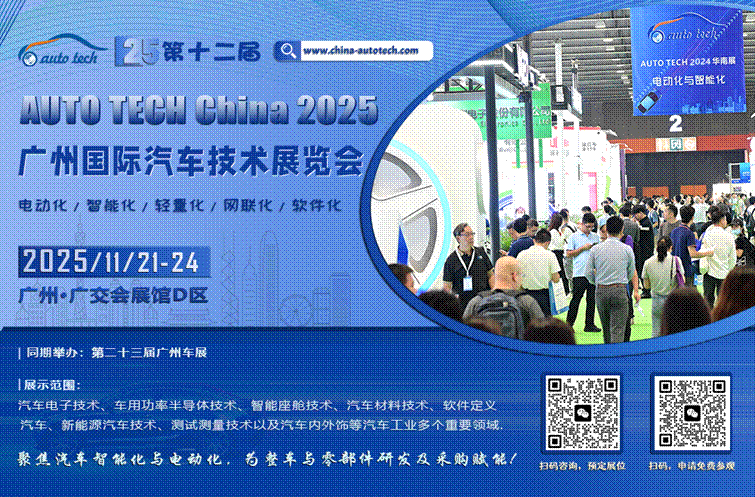 AUTO TECH China 2025——诚邀您与行业同仁一道共迎汽车人的行业盛会,奏响汽车产业新篇章。11月21日-24日,广州·广交会展馆D区,期待您的莅临!广告席位和展位已剩少量在售,预订从速。可联系组委会索取参展合同及展位平面图!更多精彩等待您现场解锁!