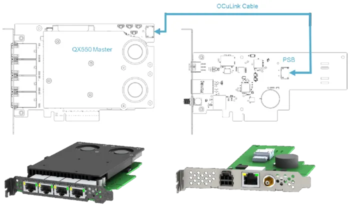 两者通过 OCuLink 线缆实现数据与时钟信号的低延迟传输,结合 XTSS(eXtended Time Synchronization Service)软件套件,构建了 “高精度同步 + 多源冗余 + 失效容错” 的完整技术链路。
