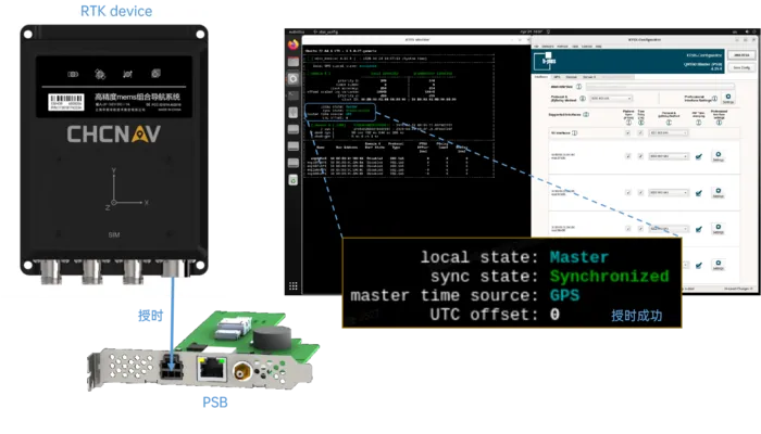 以华测惯导CGI430为例,它支持PPS+GPRMC方式完成授时,与PSB+QX550模块链接,进而完成整个系统的时间同步。