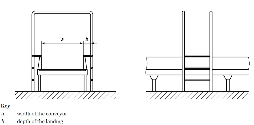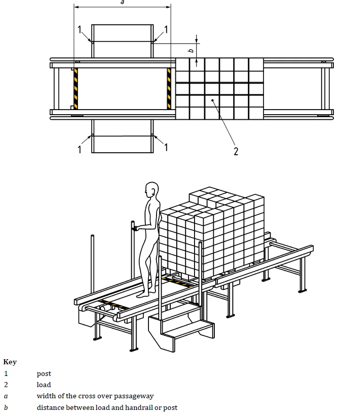 EN 619:2022《连续搬运设备和系统 单元载荷机械搬运设备的安全要求》第4.10章“通道设施” 提供了答案。